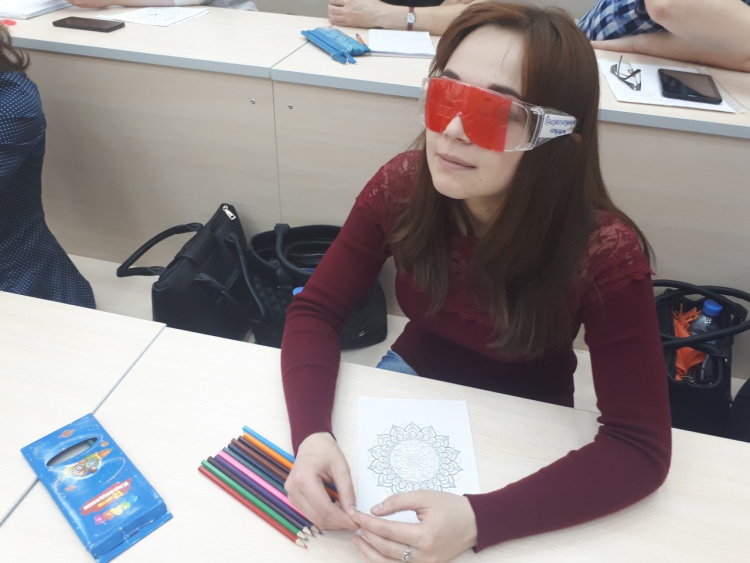 Сегодня на мастер-классе конкретно была разобрана ситуация с включением детей с нарушением зрения. Педагоги на себе смогли почувствовать, как это не полноценно видеть или вообще не иметь зрения, с помощью специально созданных очков понять на практике, что адаптированные учебные пособия это не прихоть, а необходимость.