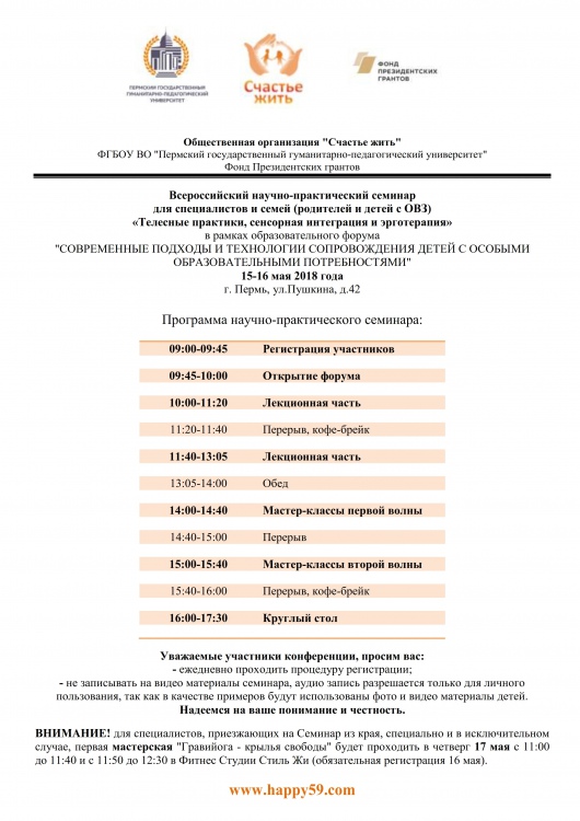 Благодаря поддержке Проекта Счастье жить Фондом президентских грантов участие в Семинаре БЕСПЛАТНОЕ