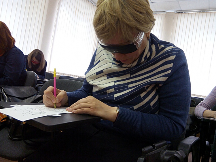 Затем участники мастерской поделились своими впечатлениями, ощущениями о том, какие трудности они испытывали при выполнении заданий. Мнения были разные, но почти каждый сказал о том, что ощутил дискомфорт, тревогу и головную боль при напряжении зрения.