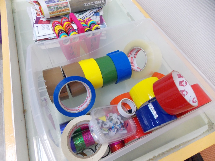 Сегодня мастерили сказочного героя - игрушку, а может и просто друга для ребенка из разноцветного скотча, бумаги, картона и фольги.