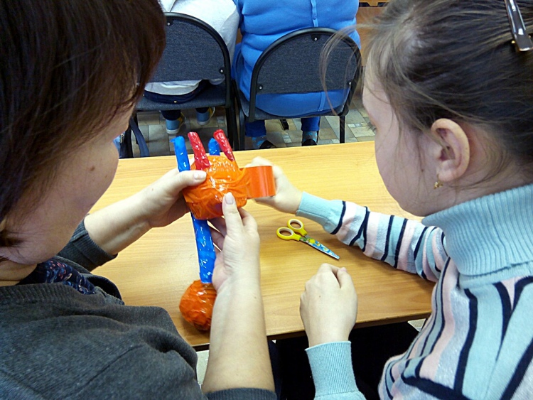 На первый взгляд всё очень просто, материалы совсем обычные в повседневной жизни, но сколько усилий и терпения было приложено, чтобы игрушка, сделанная своими руками, получилась и ожила. Родитель и ребенок, рука в руке, вместе мастерили и создавали своего героя. Затем пробовали сочинить свою сказочную историю про любимого персонажа, который в дальнейшем поможет кому-то порадоваться, а кому-то просто пообщаться. А может дома все вместе в семейном кругу, дети и родители, смастерят ещё какую-нибудь новую игрушку и подарят их своим братикам и сестренкам или друзьям)))