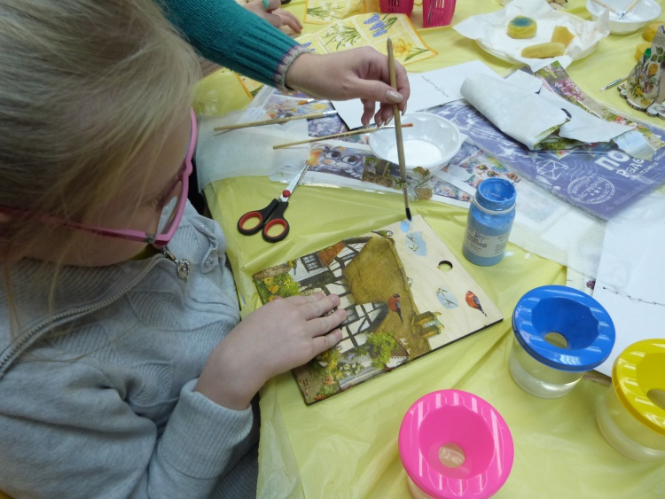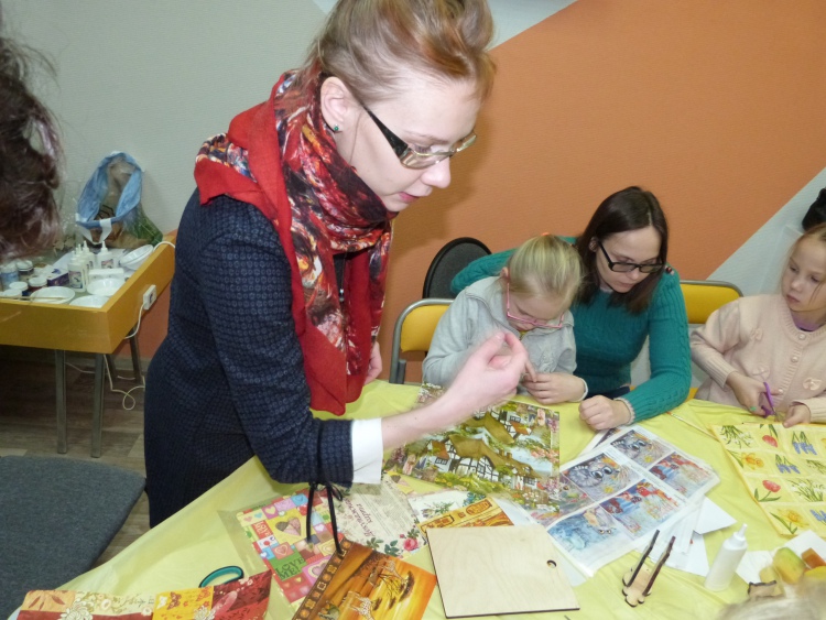 В субботу, 17 ноября, в Библиотеке возможностей дети вместе с родителями учились технике декупаж.