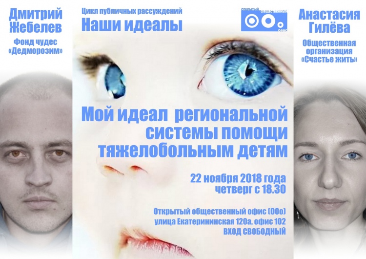 Уже завтра, 22 ноября 2018 года, состоится встреча в рамках цикла «Мой идеал в моём деле», где выступит Анастасия Гилёва, создатель Общественной организации «Счастье жить».В Открытом общественном офисе пройдут рассуждения на тему «Мой идеал региональной системы помощи тяжелобольным детям».