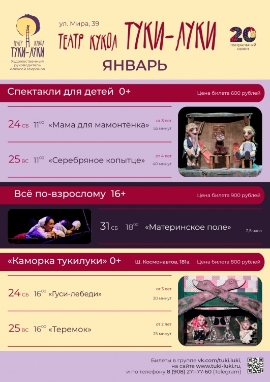 Чтобы не пропустить следующие спектакли театра, смотрите афишу на январь-февраль.