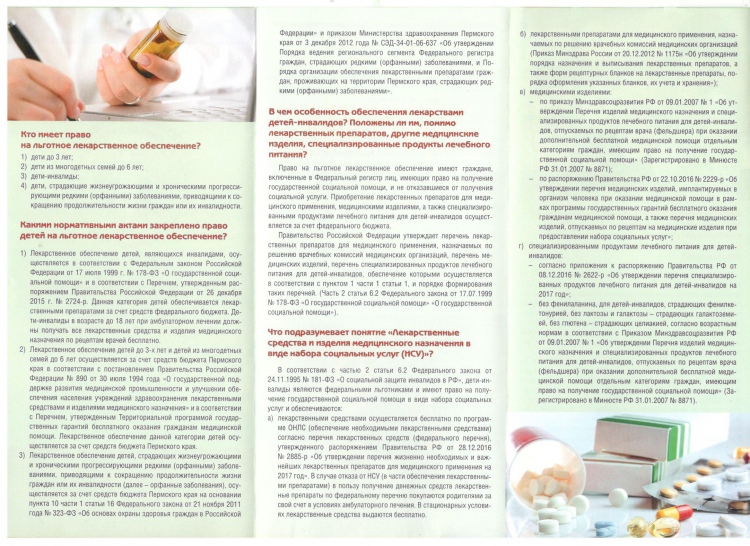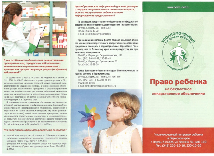 Благодаря поддержки Проекта Право жить Общественной организации Счастье жить Уполномоченным по правам ребенка в ПК выпущена листовка о лекарственном обеспечении: