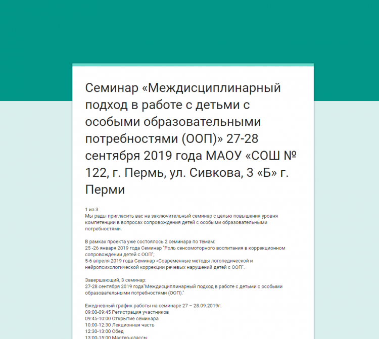 В Перми 27-28 сентября 2019 года пройдет Научно-практический семинар «Междисциплинарный подход в работе с детьми с особыми образовательными потребностями (ООП)».