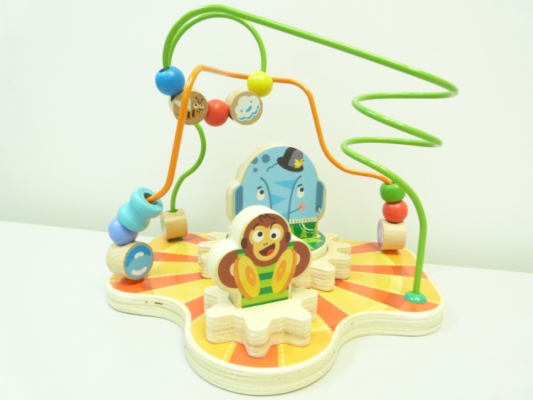 Сортер-лабиринт представляет собой комбинацию из нескольких разноцветных проволок, изогнутых в разных плоскостях и закрепленных на деревянном основании. На каждой проволоке нанизаны разноцветные деревянные фигурки различной формы. По вашему заданию ребенок будет перемещать фигурки заданного цвета по заданной проволоке. Перемещая фигурки, можно научить ребенка считать, познакомить с основными цветами.