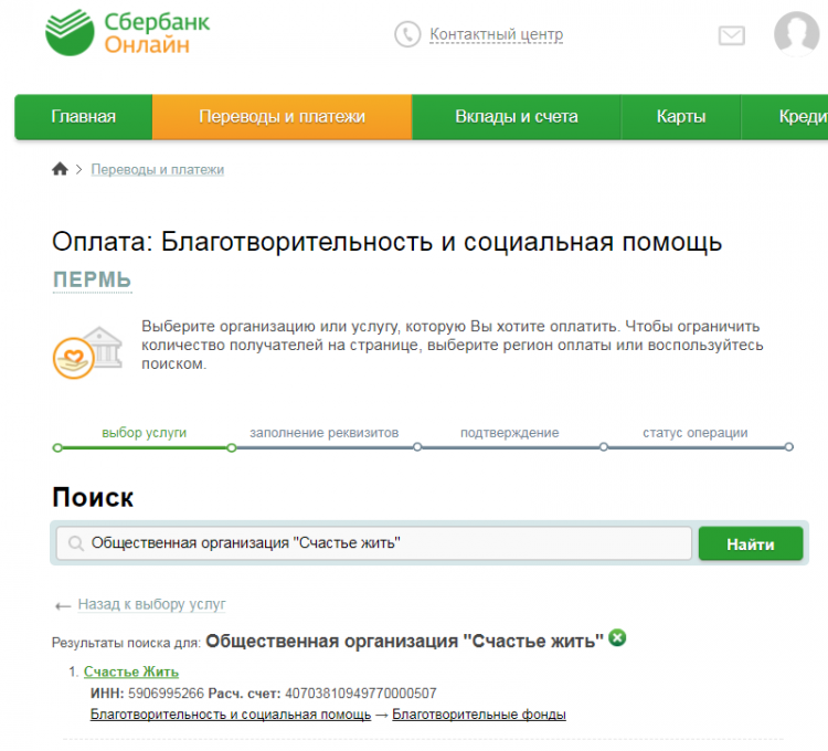 Дорогие друзья!Помогать нам стало ещё легче. Теперь с помощью СБЕРБАНК – ОНЛАЙН в разделе "Благотворительность", набрав по поиску - Общественная организация "Счастье жить", вы сможете поддержать любой наш проект или программу.