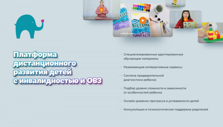 Дистанционная система обучения детей - видео-контент специально-адаптированных занятий для детей по 7-ми направлениям (легоконструирование, йога для детей, творческая мастерская, логопедическая разминка, адаптированная физическая культура, кулинарные практикумы, экскурсионные прогулки).
