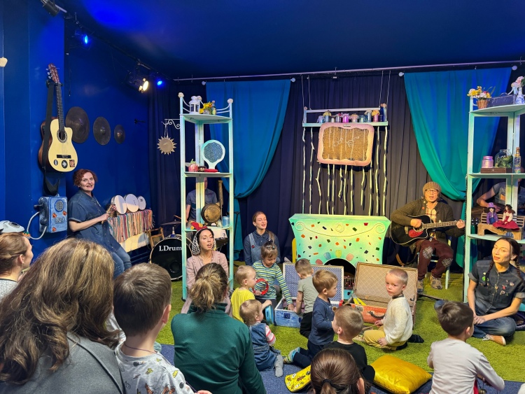 Зал вмещает всего 26 человек, что создаёт уютную домашнюю обстановку. Здесь проходят не только спектакли, но и театральные мастерские. Перед началом спектакля зрителей встречают весёлыми песнями. Для всех желающих приготовлены детские музыкальные инструменты. Можно играть и петь вместе с артистами. В репертуаре — авторские песни из спектаклей театра, советские песни и песенки из современных мультфильмов. Дети и взрослые вместе играют и подпевают артистам. Совместные песни объединяют совершенно незнакомых людей. И когда через полчаса начинается спектакль, зрители становятся одной большой дружной семьёй, собравшейся дома, как в старые добрые времена.